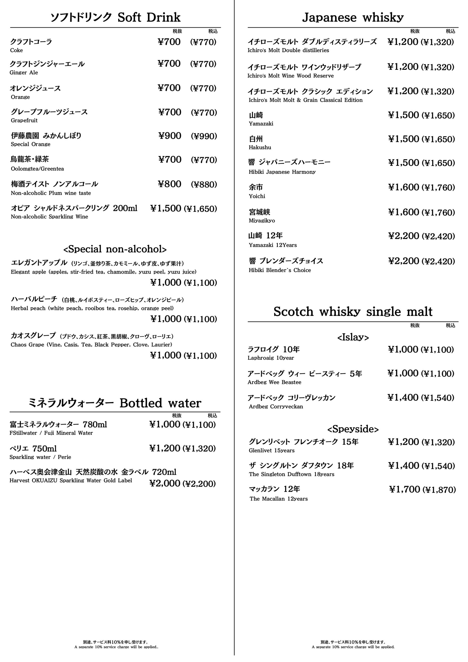 - Full Bottle 22,000円(税込24,200円)