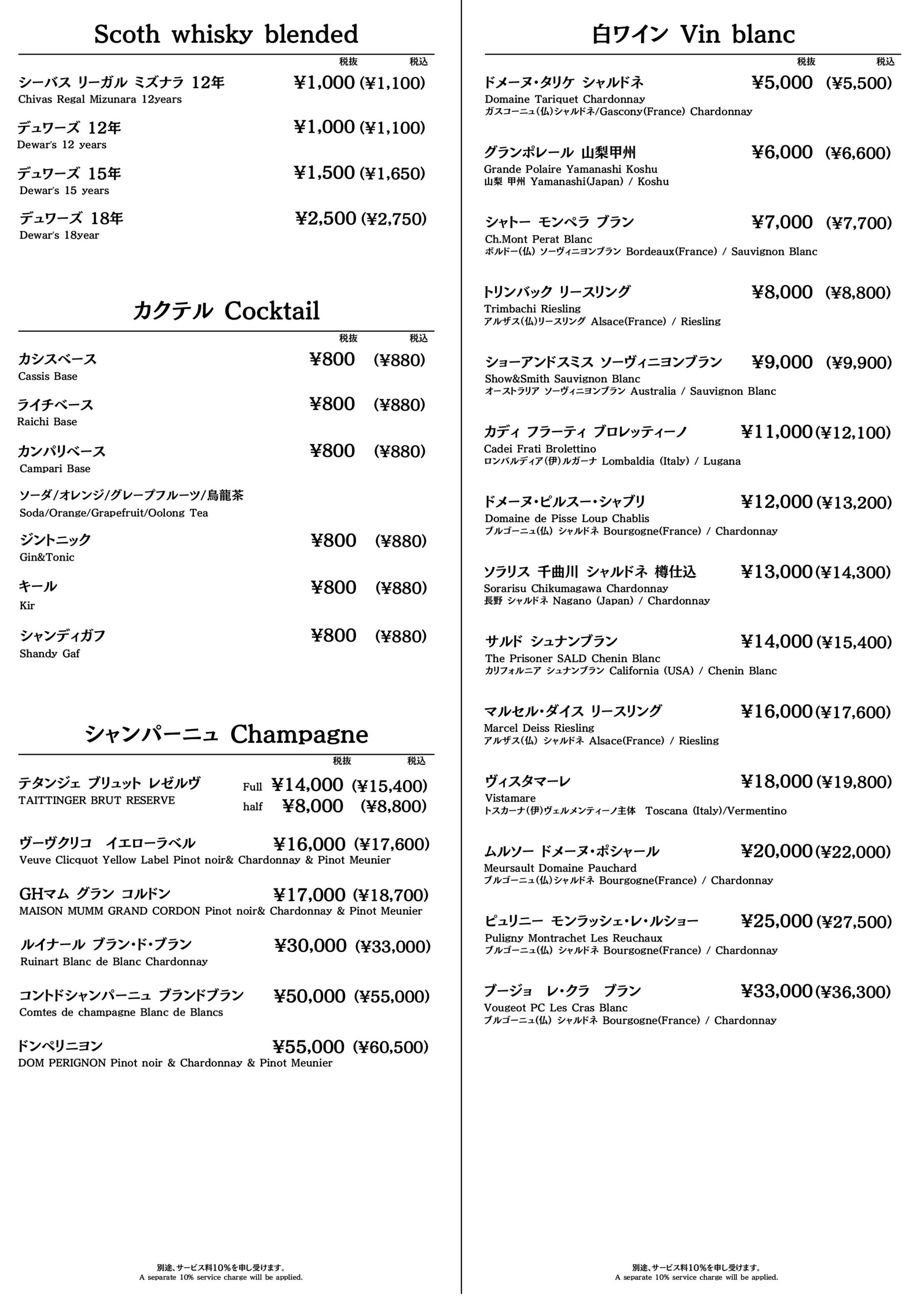 - Half Bottle 25,000円(税込27,500円)