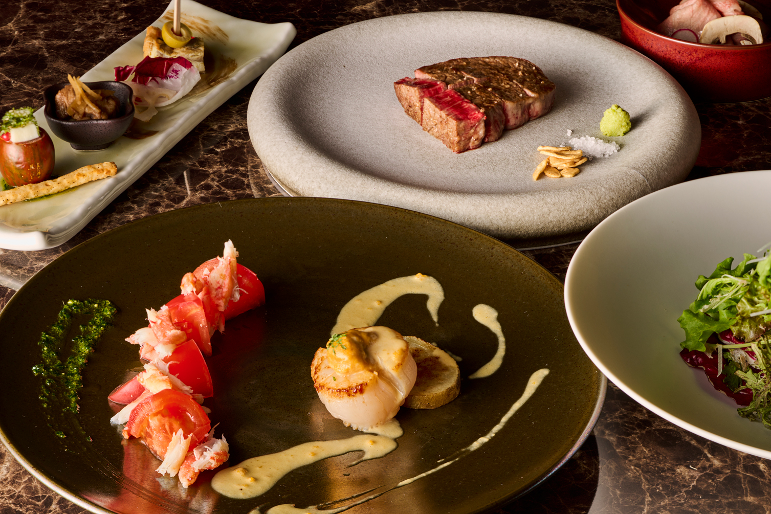 A5ランク黒毛和牛や伊勢海老といった厳選食材に加え、